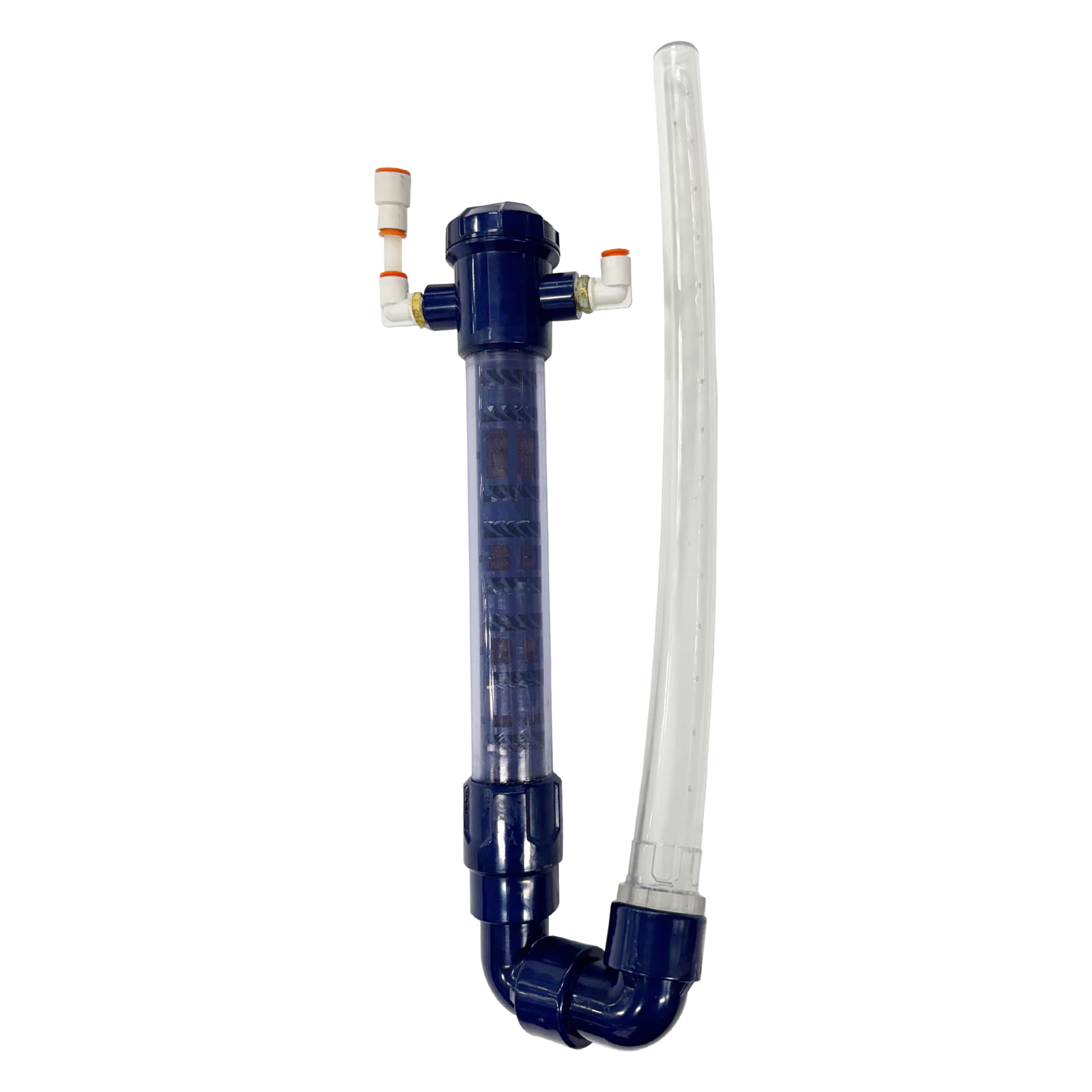 3/8” air intake and a ½” solution intake with built in check valve to prevent back flow.