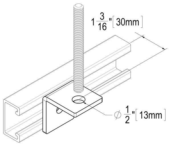 - Hanger Angle – Accepts up to 1/2″ threaded rod (rod not included)