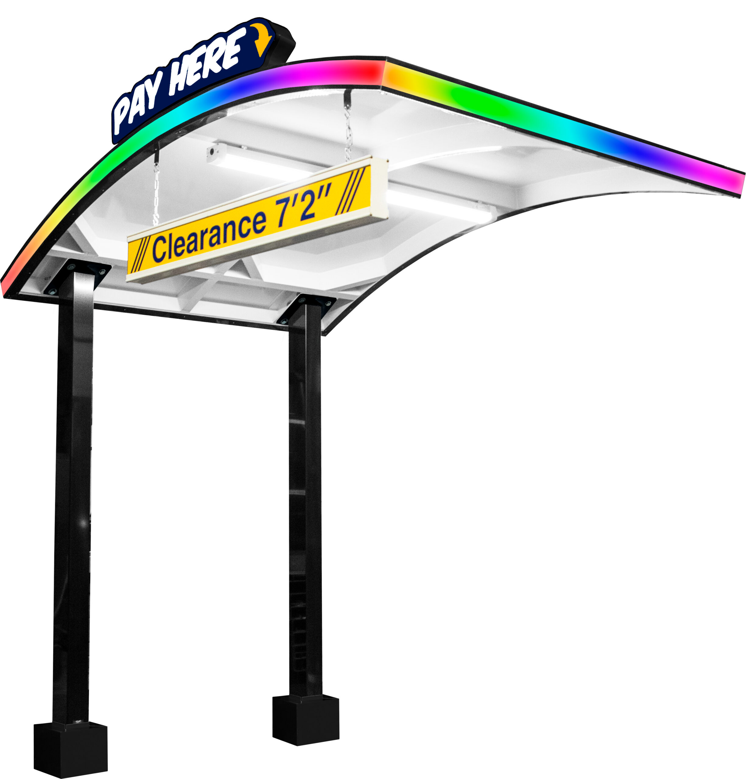 - Edge Illuminated Dual Post Curved Pay Station Canopy