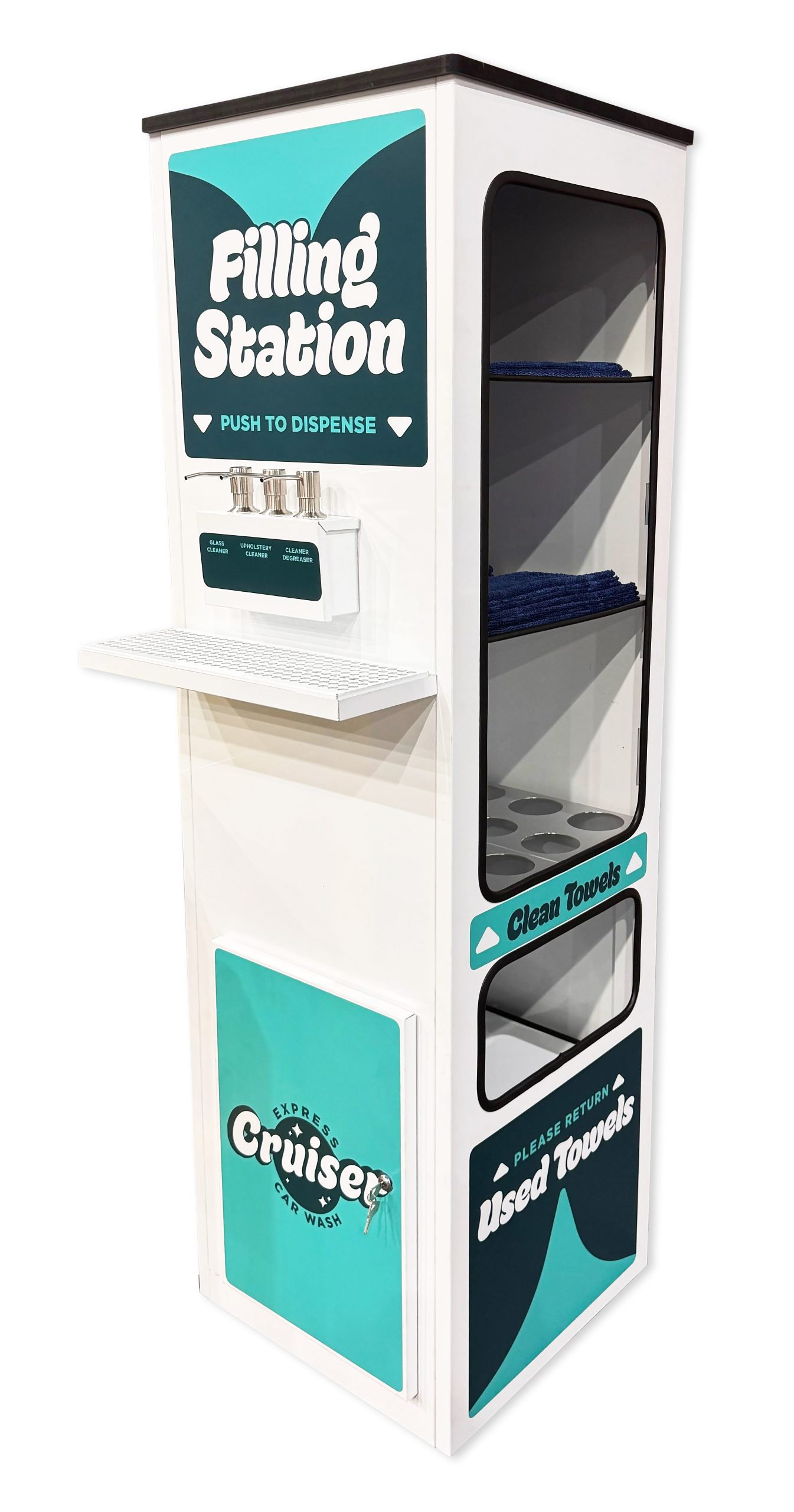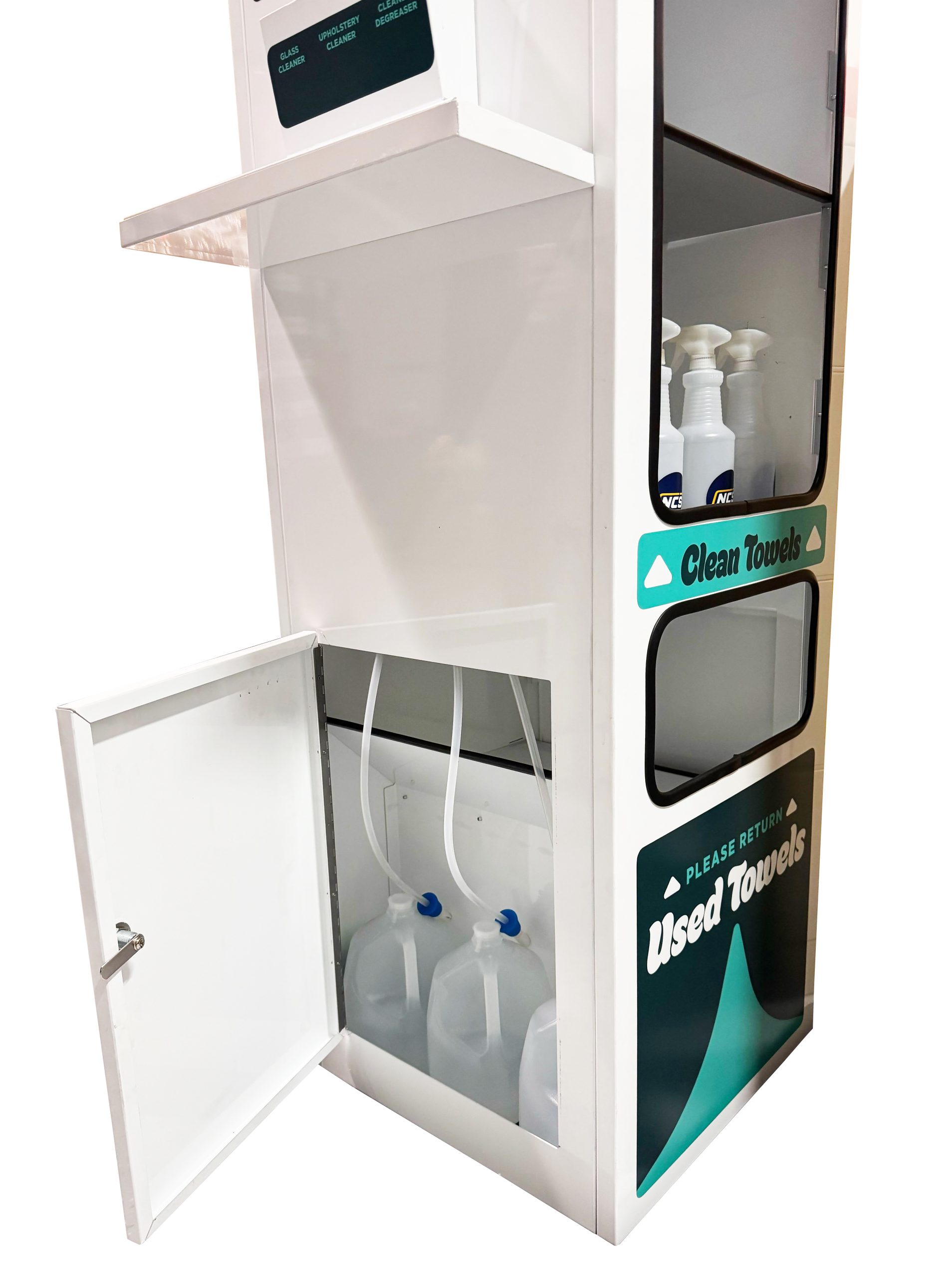Multi-shelved unit featuring a built-in filling station that efficiently supports all of your customers’ detailing needs.
