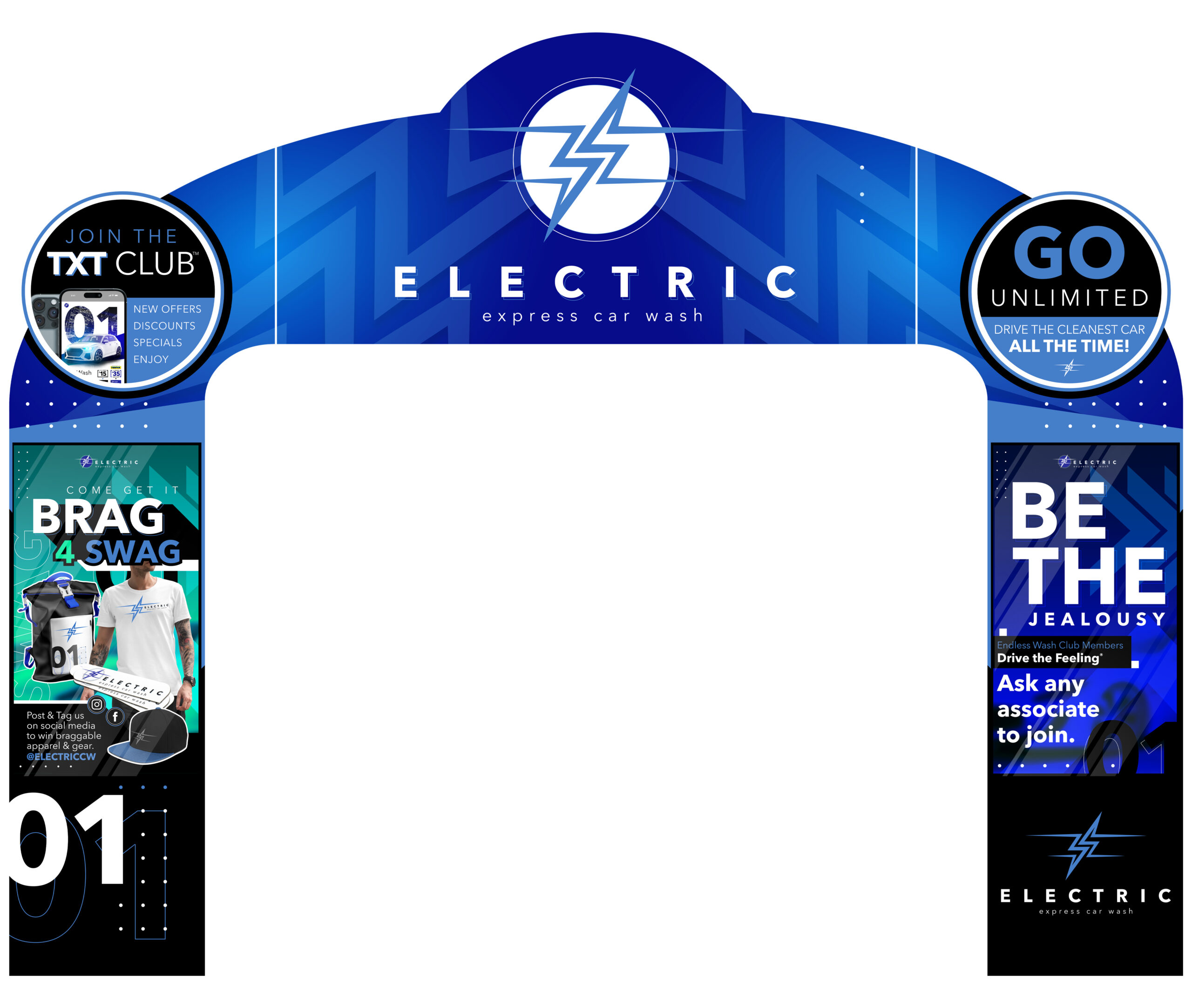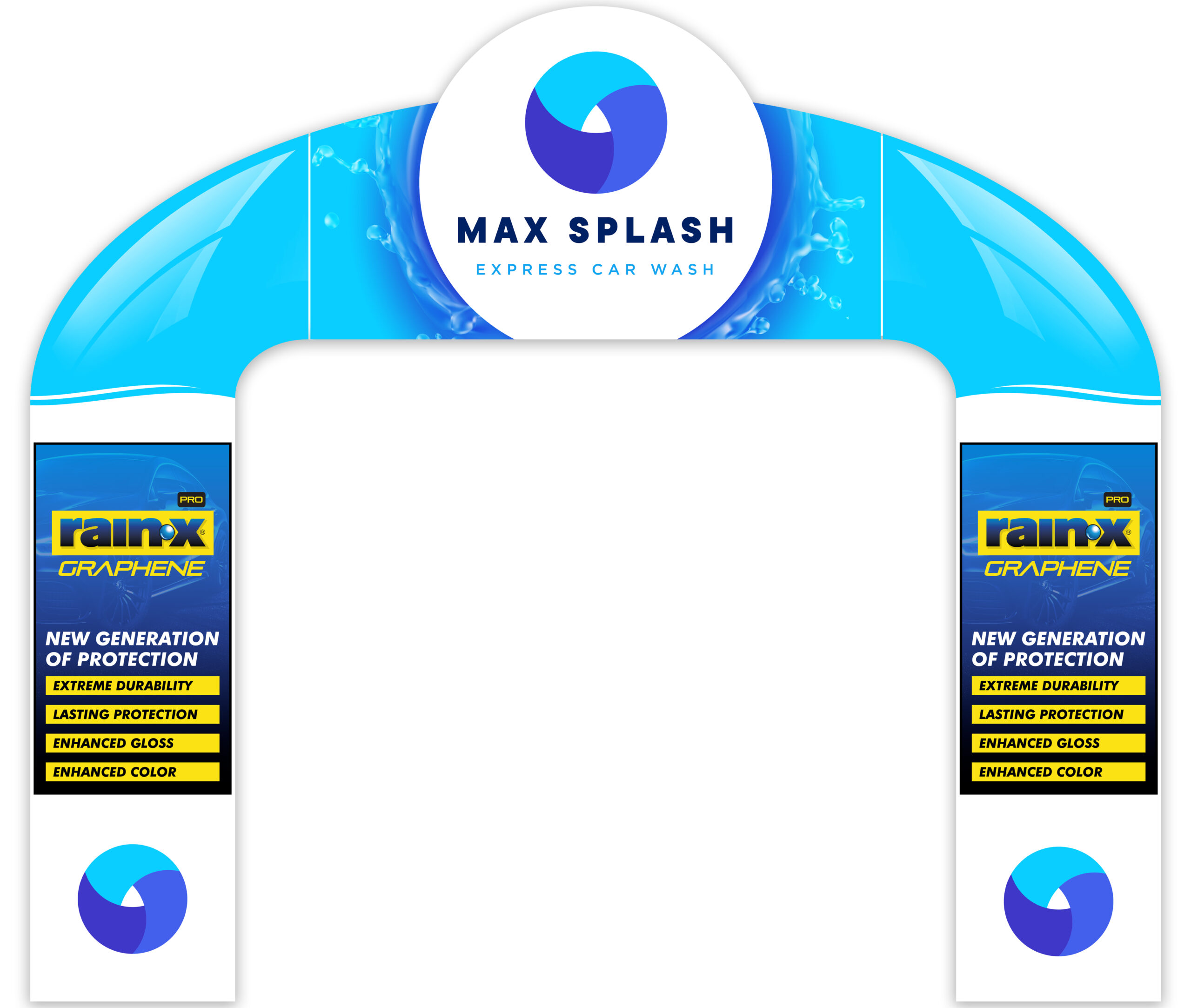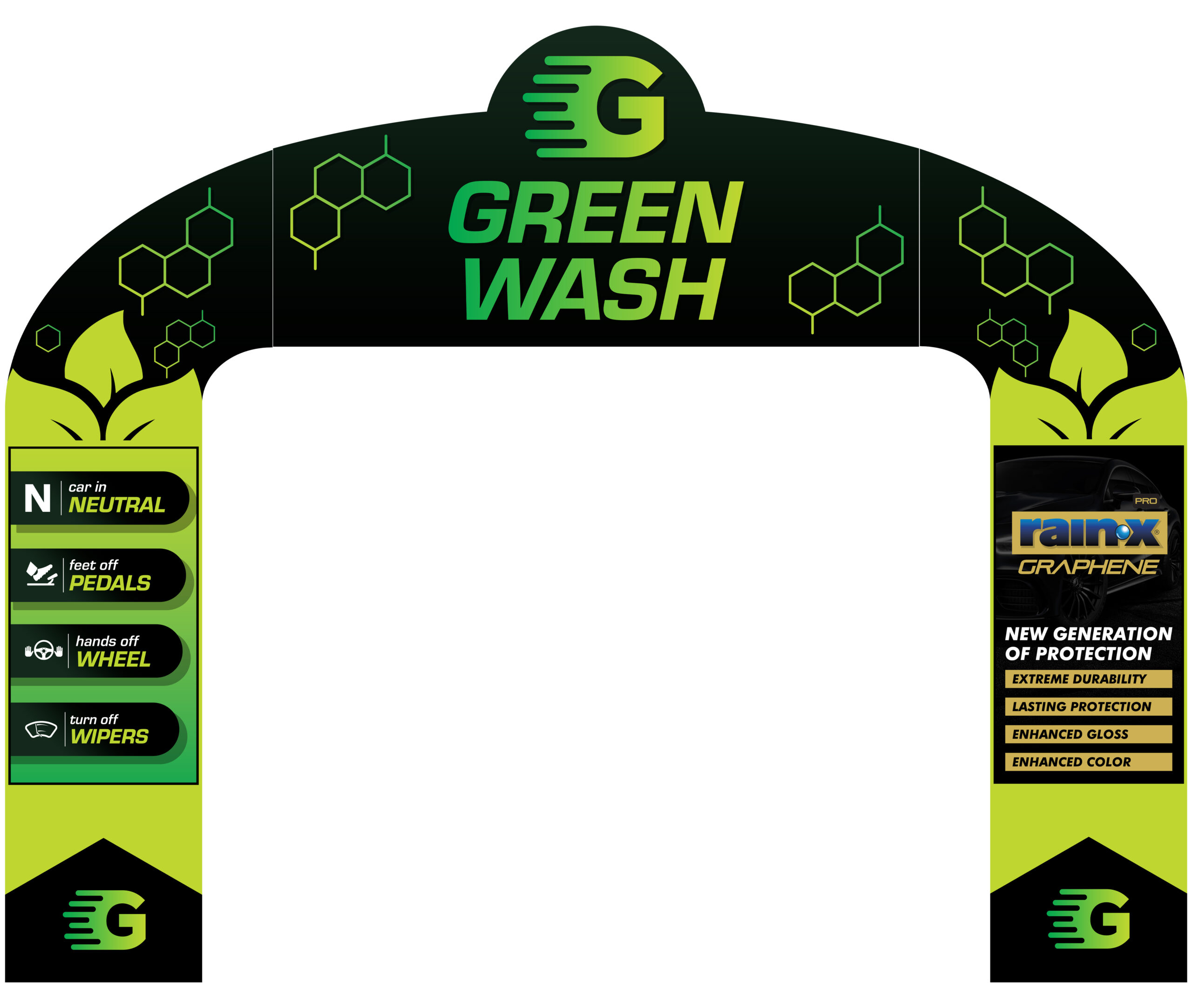 This state-of-the-art entrance arch is a true testament to innovation in the car wash industry, featuring an interactive loader side that immediately engages customers with its dynamic movement. Alongside, the twin digital screens offer a dazzling display of vibrant graphics and customized messages, creating a sense of excitement and anticipation.